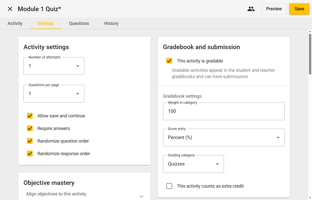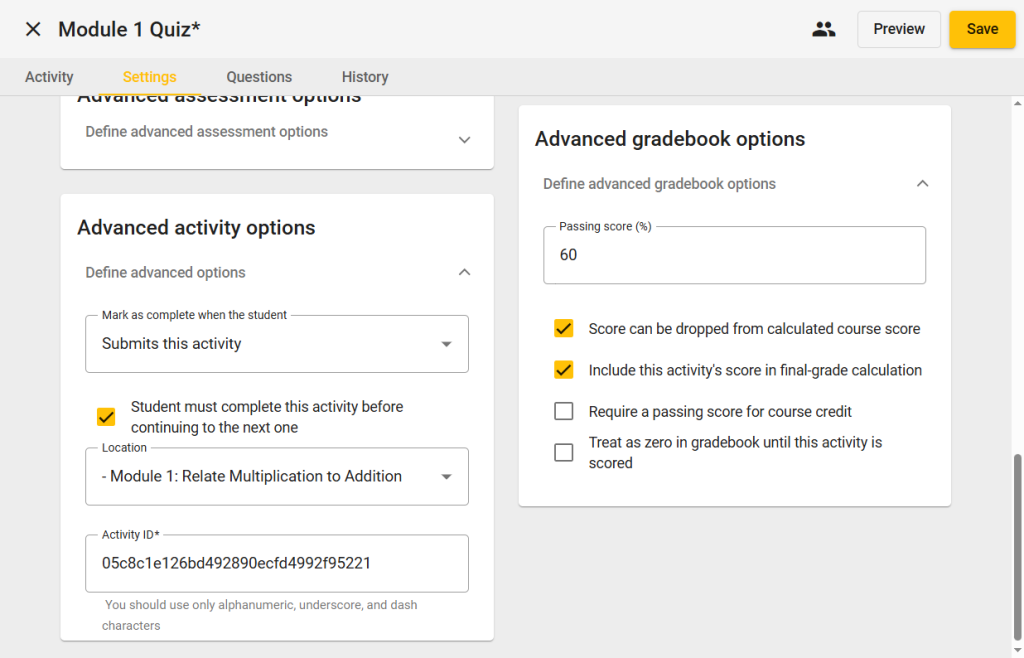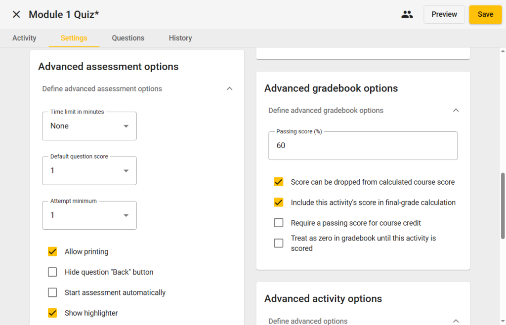 - If multiple attempts are allowed, choose which attempt is scored: Last, First, Highest, or Average